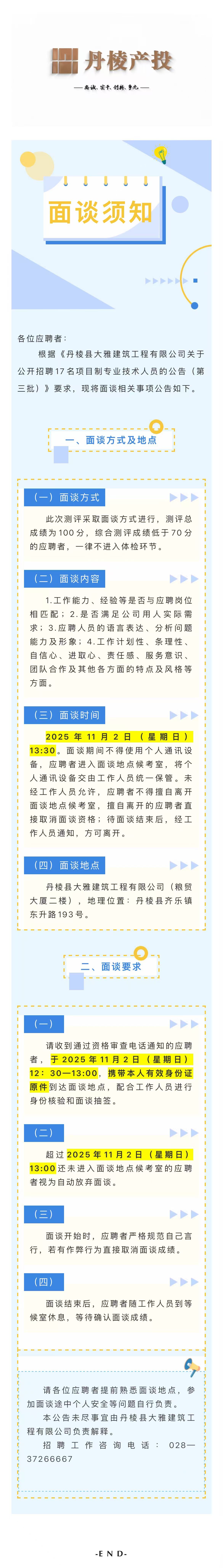 丹棱縣大雅建筑工程有限公司關(guān)于公開(kāi)招聘17名項(xiàng)目制專業(yè)技術(shù)人員的面談須知(第三批)